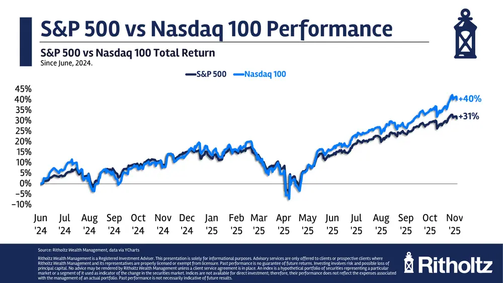 اگر به دنبال دلیلی برای نگرانی هستید، موارد زیادی وجود دارد: ارزشگذاریها بالا هستند، همه جا صحبت از حباب هوش مصنوعی است؛ بازار در سهمهای بزرگ متمرکز شده و رشد به شکل فزایندهای محدود به چند سهم خاص است؛ نگرانیهایی در مورد اعتبار شرکتها در بحبوحه برخی ورشکستگیهای کوچک وجود دارد و جو روانی بازار منفی است.
