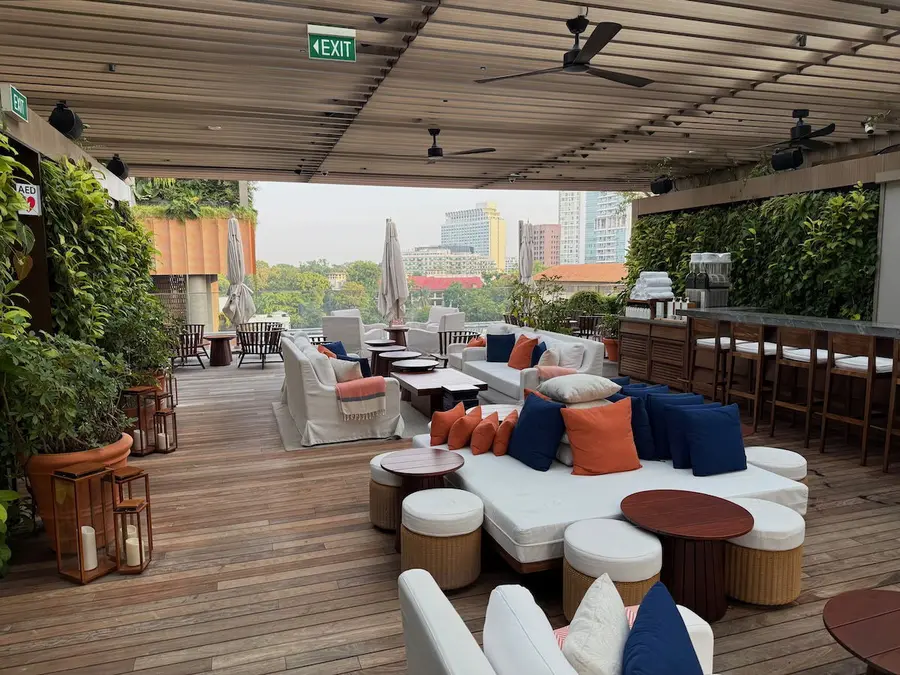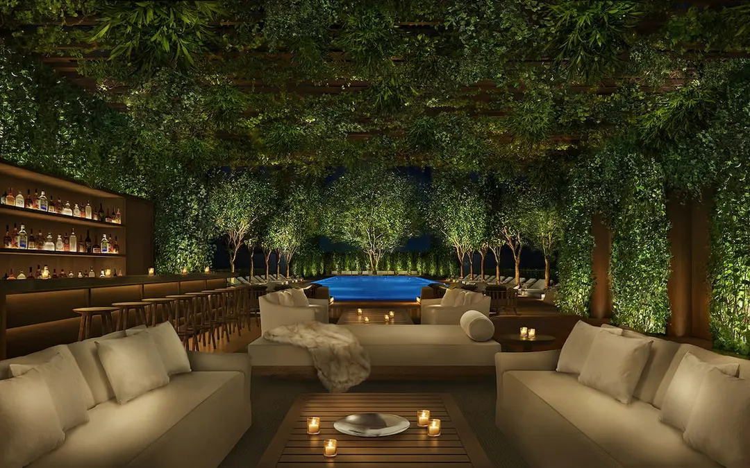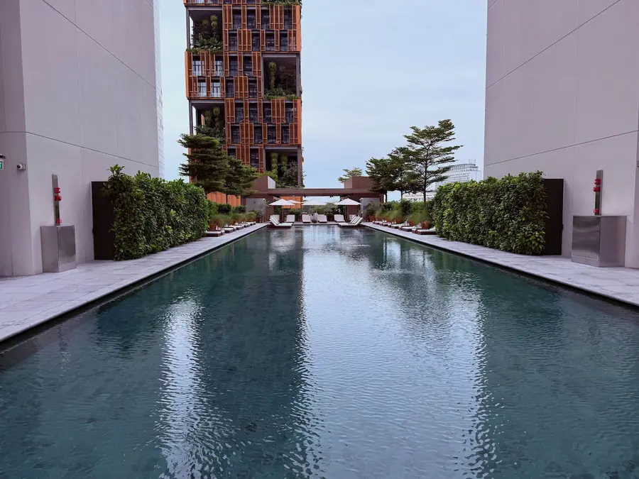 در هتلی که پر از خاطرات فراموشنشدنیه، سنگاپور EDITION لحظه bravura خودش رو برای استخر شنا و تراس پشتبام ذخیره میکنه. قابل دسترسی از طریق بار The Roof، استخر با تختخوابهای روز آروم قابگیری شده و ۴۳ متر از نوک تا نوک کشیده میشه، انگار شناور مثل یک سفینه فضایی تمام سفید بالای حیاط باغ نه طبقه پایینتر.